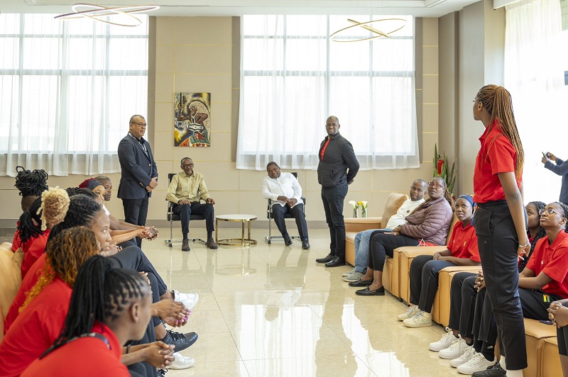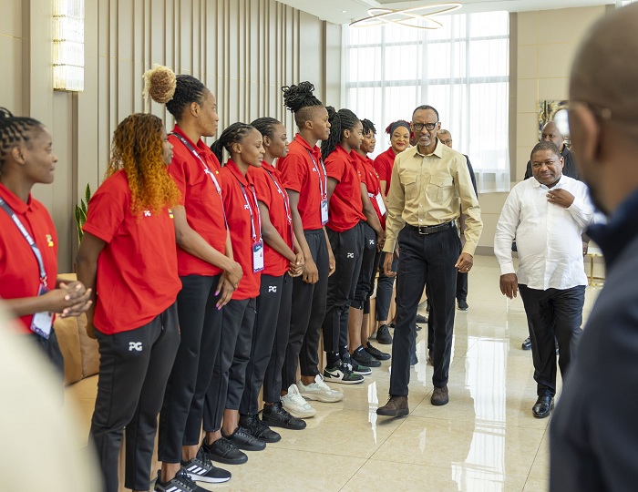 Ibiro by’Umukuru w’Igihugu, Village Urugwiro, byatangaje ko Perezida Kagame na mugenzi we Philip Nyusi, bahuye n’aba bakinnyi b’ikipe y’igihugu ya Mozambique, kuri uyu wa Gatandatu tariki 29 Nyakanga 2023.