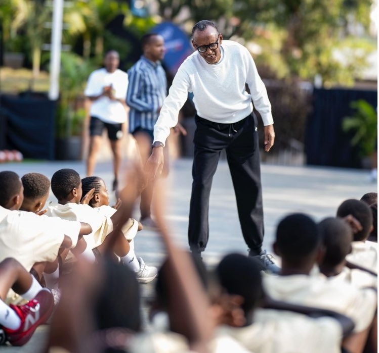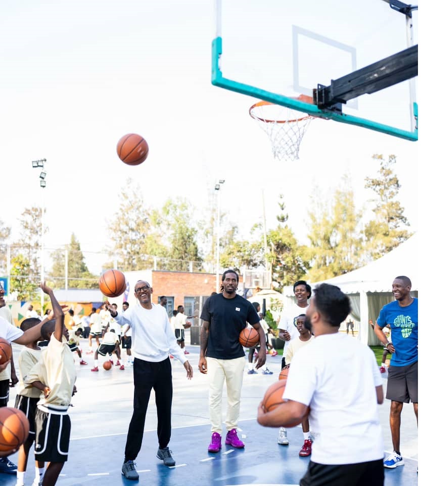 Perezida Kagame yabigarutseho ubwo kuri iki Cyumweru yasuraga abana bari bamaze iminsi bigishwa Basketball muri Club Rafiki, ari kumwe n’umunyabigwi muri NBA, Kawhi Leonard ndetse na Masai Ujiri washinze umuryango wa Giants of Africa.
