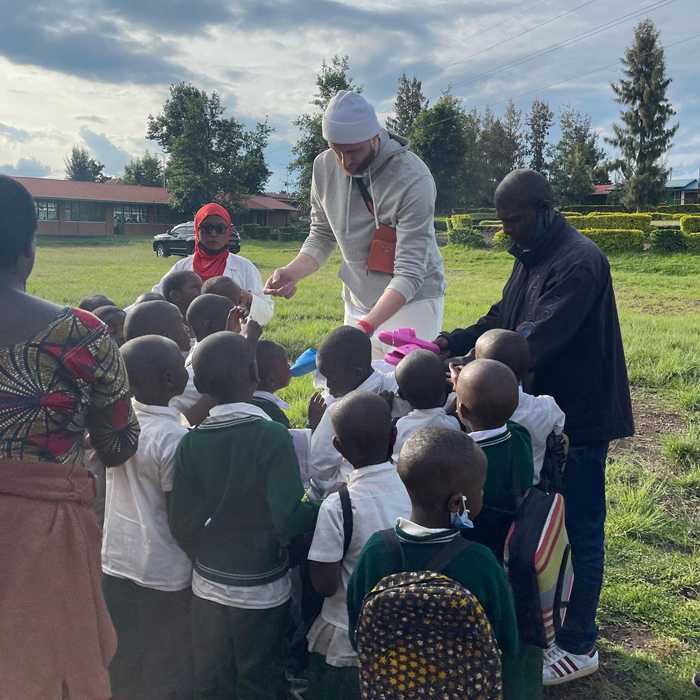 Yaje gusura ibigo bibiri biri mu mujyi wa Musanze ndetse no mu bice byo mu Kinigi, abagenera ibikoresho birimo iby’ishuri amakayi, amakaramu imipira yo gukina y’umupira w’amaguru na Basketball ndetse n’ibindi.