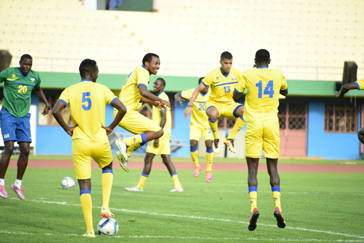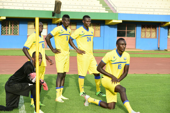 Abakina imbere:Ernest Sugira (AS Kigali), Quentin Kwame Rushenguziminega (Laussane Sport, Swiss), Elias Uzamukunda (Le Mans, France) na Dany Usengimana (Police Fc).
