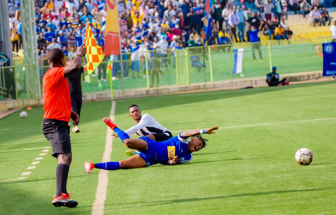 Ikipe ya Rayon Sports yakomeje kwiharira iminota y’igice cya mbere ariko APR FC na yo inyuzamo igasatira. Ku munota wa 37 Manishimwe Djabel yahaye umupira Fitina Ombolenga ku ruhande rw’iburyo na we ahita awuhindura ariko myugariro Niyigena Clement awushyira muri koruneri yatewe neza na Djabel Manishimwe. Kapiteni wa APR FC, Jacques Tuyisenge, yashyizeho umutwe ariko umupira unyura ku ruhande rw’izamu rya Hakizimana Adolphe wa Rayon Sports.