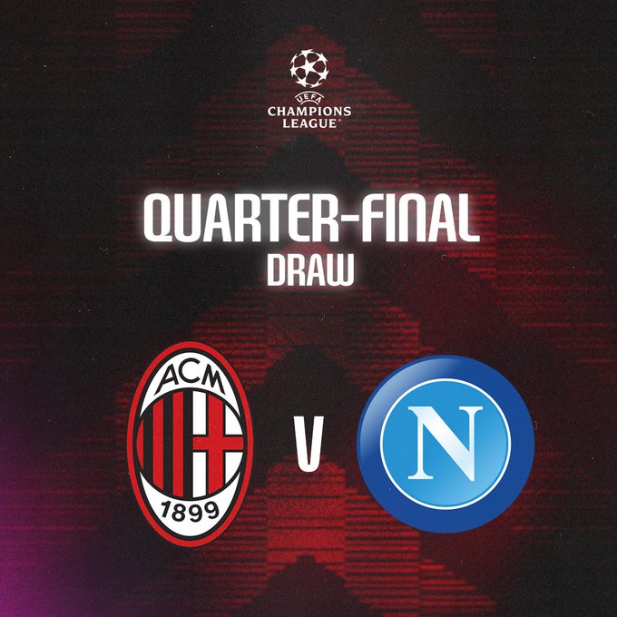 Ikipe ya Milan AC na Napoli zo mu Butaliyani na zo zizahura muri 1/4 cy’irangiza. Aya makipe ahuriye muri shampiyona imwe, ni ku nshuro ya mbere agiye guhurira muri UEFA Champions League. Napoli kugeza ubu ni yo kipe iyoboye shampiyona y’u Butaliyani n’amanota 68 mu gihe Milan AC iri ku mwanya wa 4 n’amanota 48.