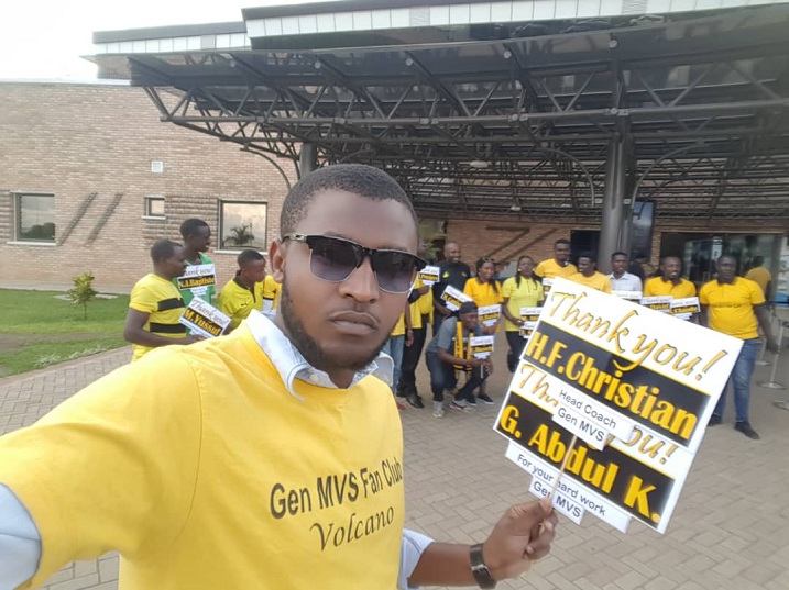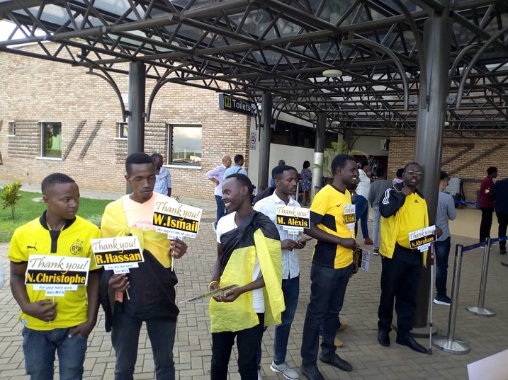 Iri tsinda ry’abafana rizwi nka Gen M.V.S , ryari rigizwe n’abasore n’inkumi bari baje kuyakira bitwaje ibyapa biriho ubutumwa bushimira umutoza na buri mu kinnyi wese wari ku mukino banganyijemo.