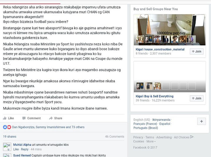 Mbonabucya Desire wari kapiteni icyo gihe nawe binyuze ku rukuta rwe rwa Facebook yanditse amagambo arimo akababaro agaragaza ko nawe yaba atishimiye ayo magambo yatangajwe na Perezida wa FERWAFA.