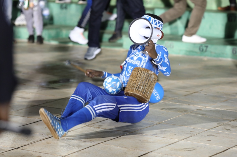 Umuhanzi Khalfan ufana Rayon Sports nawe yari yaje kuri uyu mukino, gusa uko umupira warengaga ntibyamubuzaga kureba ........