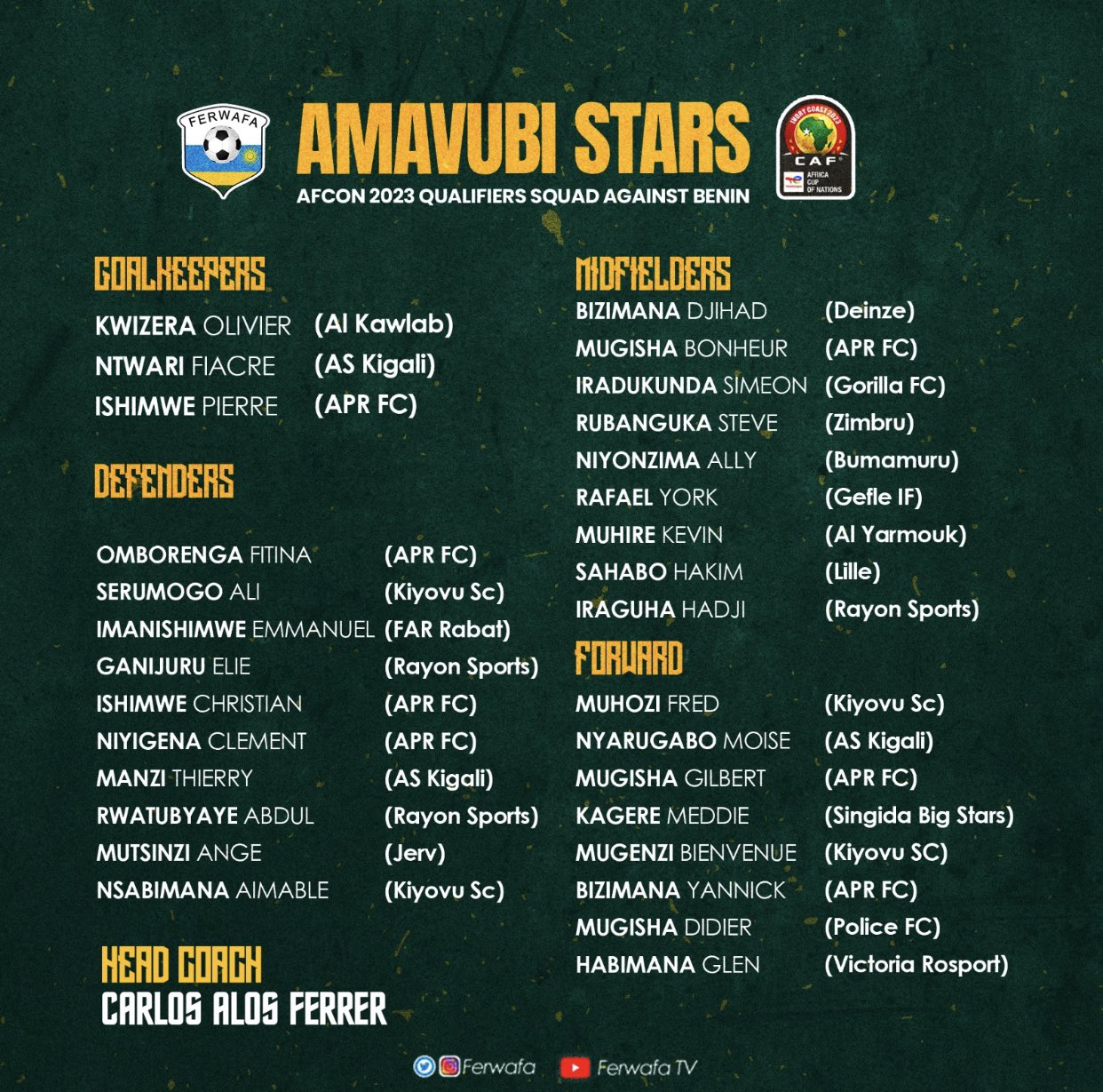 Umutoza Carlos Alos Ferrer wahawe amasezerano mashya yatangaje urutonde rw’abakinnyi 30 bagomba gutangira umwiherero kuri uyu wa Mbere bitegura iyi mikino.
