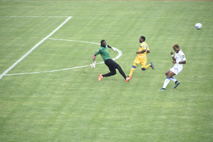 Ku munota wa 5 w’umukino, Amavubi yaje kubona Coup Franc ku ikosa ryari rikorewe Iranzi Jean Claude, maze Emery Bayisenge ayitera neza cyane gusa umunyezamu wa Gabon, umupira awohereza muri koruneri.
