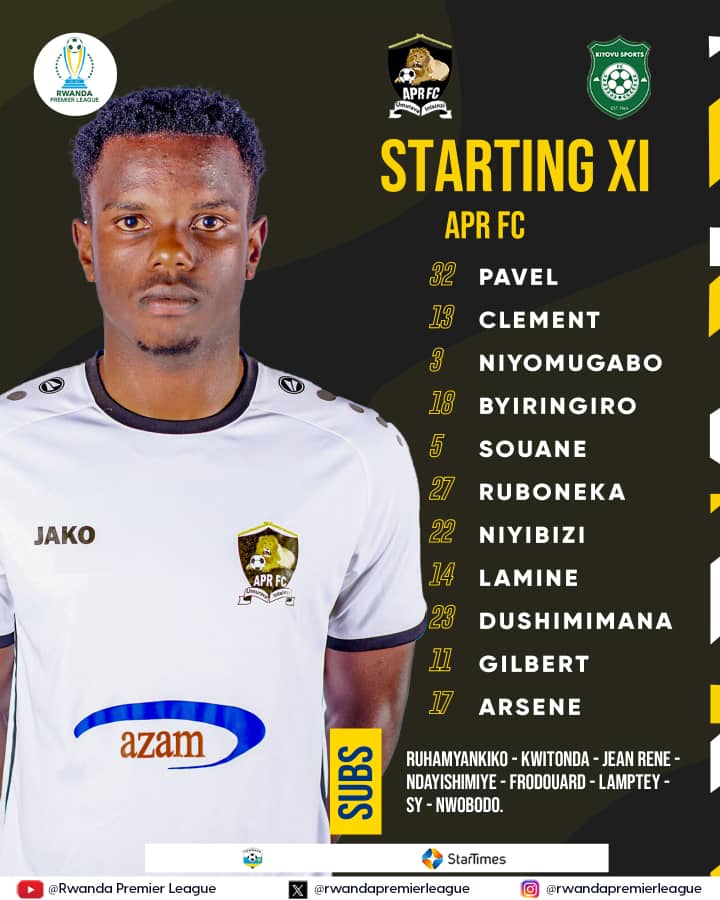 Kiyovu Sports mu gice cya mbere nayo yagiye ihusha uburyo bukomeye biturutse ku makosa y’ubwugarizi bwa APR FC aho ku munota wa 38, Nizigiyimana Karim Mackenzie yasigaranye n’umunyezamu Pavelh Ndzila ariko ananirwa kumutsinda barebana.