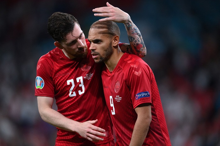 Denmark: Schmeichel, Christensen, Kjaer, Vestergaard, Stryger Larsen, Hojbjerg, Delaney, Maehle, Braithwaite, Dolberg, Damsgaard.
