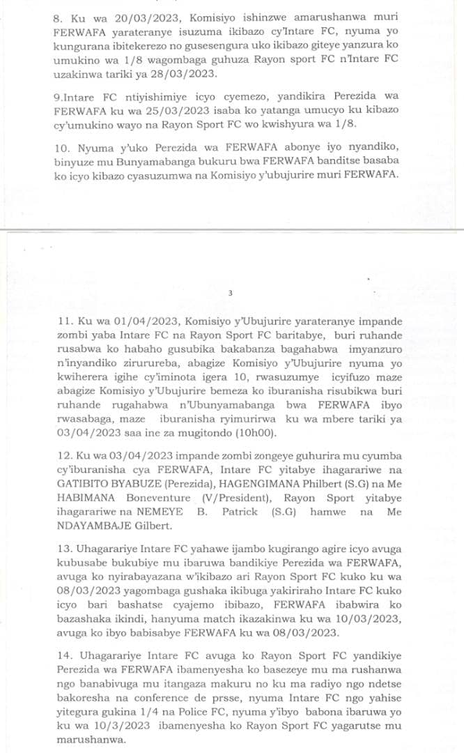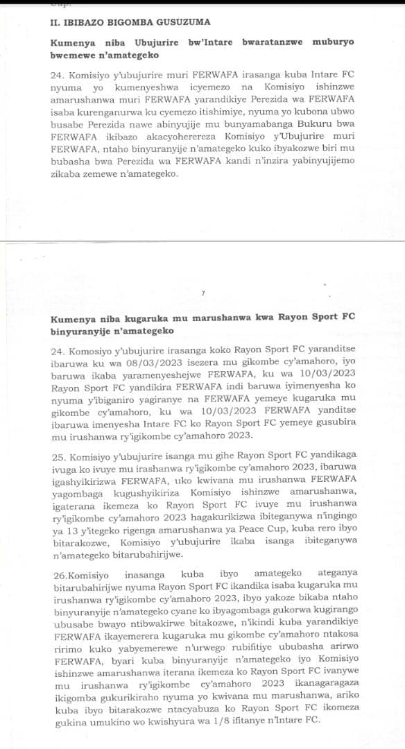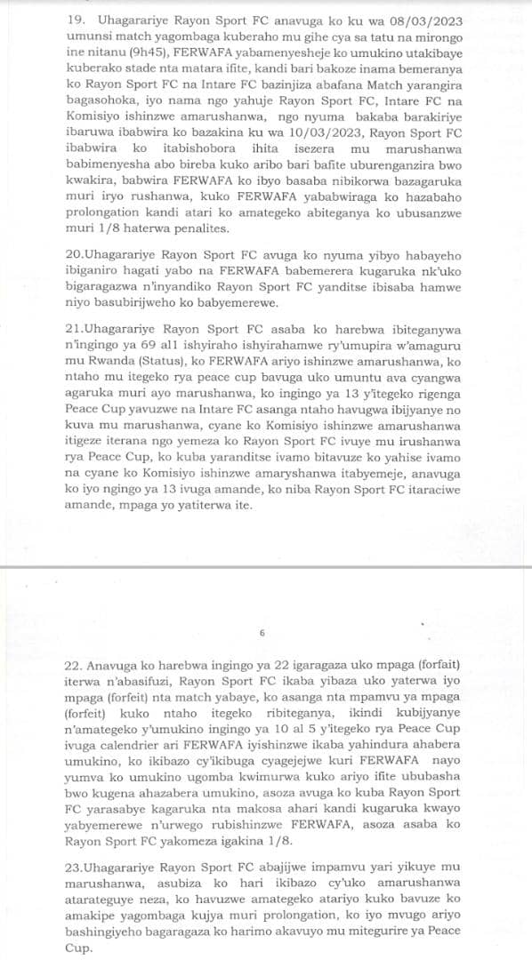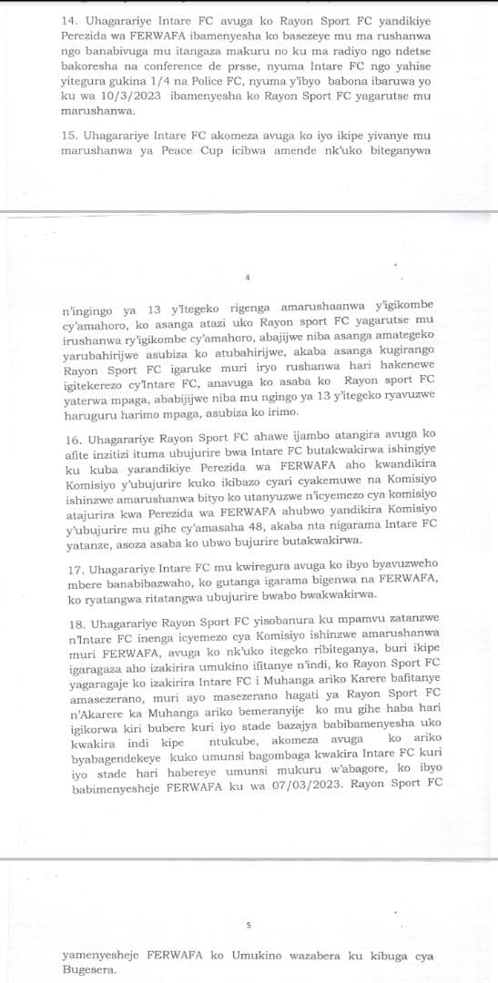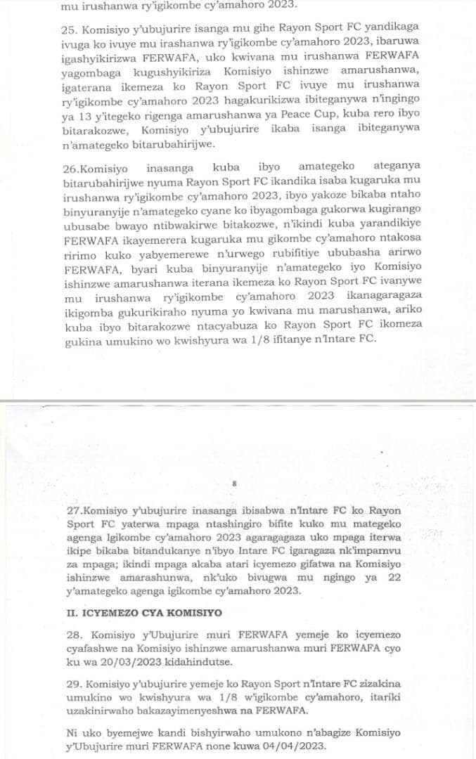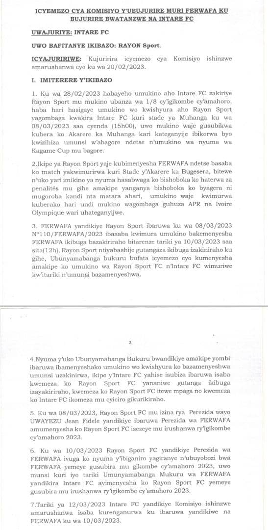 Nyuma y’ukwezi kurenga hategerejwe ikizakurikiraho nyuma y’uko umukino wo kwishyura wa 1/8 wagombaga guhuza Rayon Sports n’Intare FC utakibaye, komisiyo y’ubujurire ya FERWAFA yaraye itangaje umwanzuro wayo.