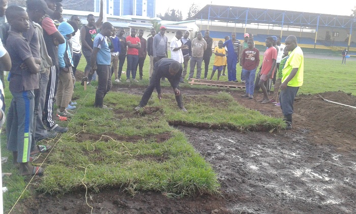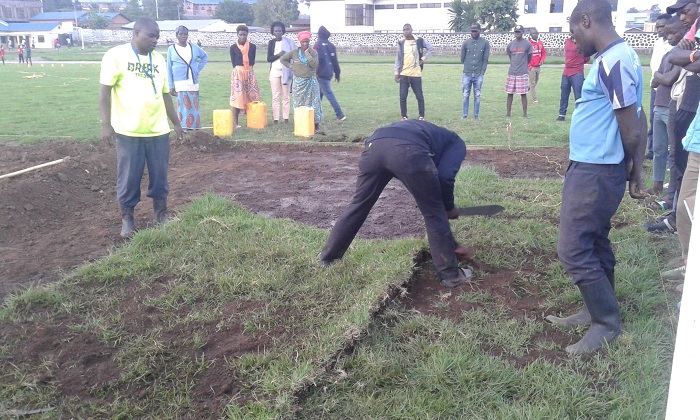 Icyo bashyizemo imbaraga cyane, ni ugushyiramo ibyatsi ahantu hagiye hangirika, kugira ngo mu gihe gito gisigaye ngo shampiyona itangire ikibuga kizabe gifite ibyatsi mu bice byose.