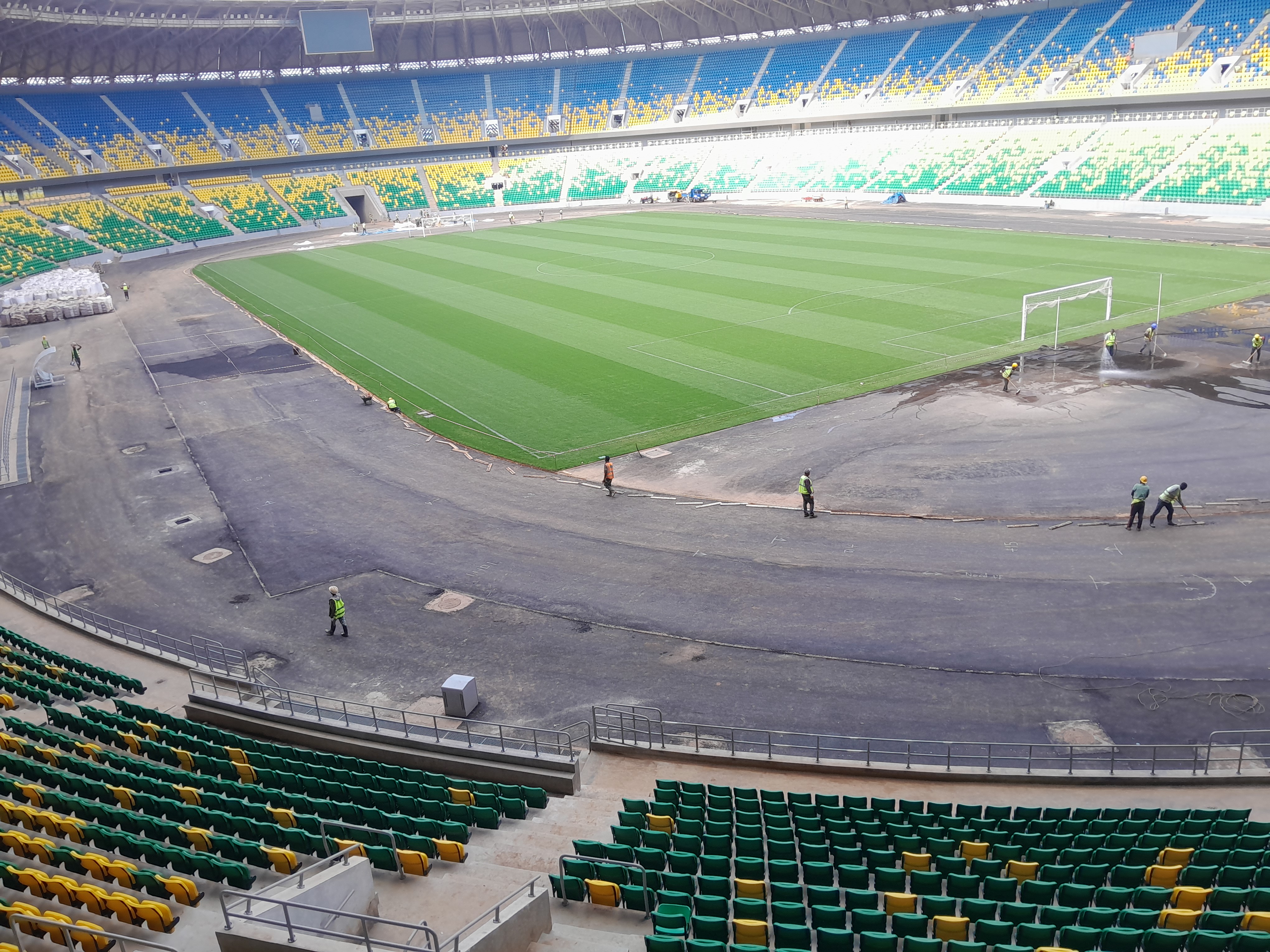 Ikibuga cy’umupira w’amaguru kizaba kigizwe n’ubwatsi bugezweho buzwi nka Hybrid, bukaba ari ubwatsi bukubiyemo ubwatsi kimeza ndetse n’ubwatsi bw’ubukorano, bukaba ari na bwo buri ku kibuga cy’imyitozo kiri inyuma ya Stade Amahoro.