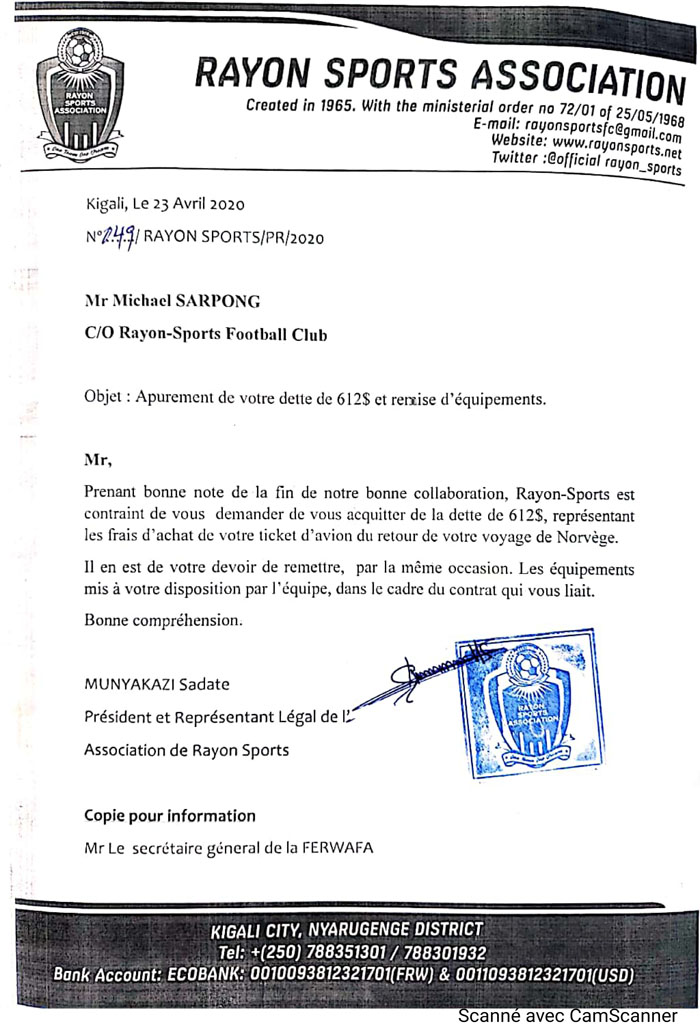 Ku munsi w’ejo ni bwo twanditse inkuru yavugaga ko uyu rutahizamu yandikiwe na Rayon Sports asabwa ibisobanuro ku makosa atatu yashinjwaga, hadaciye amasaha menshi ikipe ya Rayon Sports yahise ifata umwanzuro wo kwirukana burundu uyu mukinnyi.