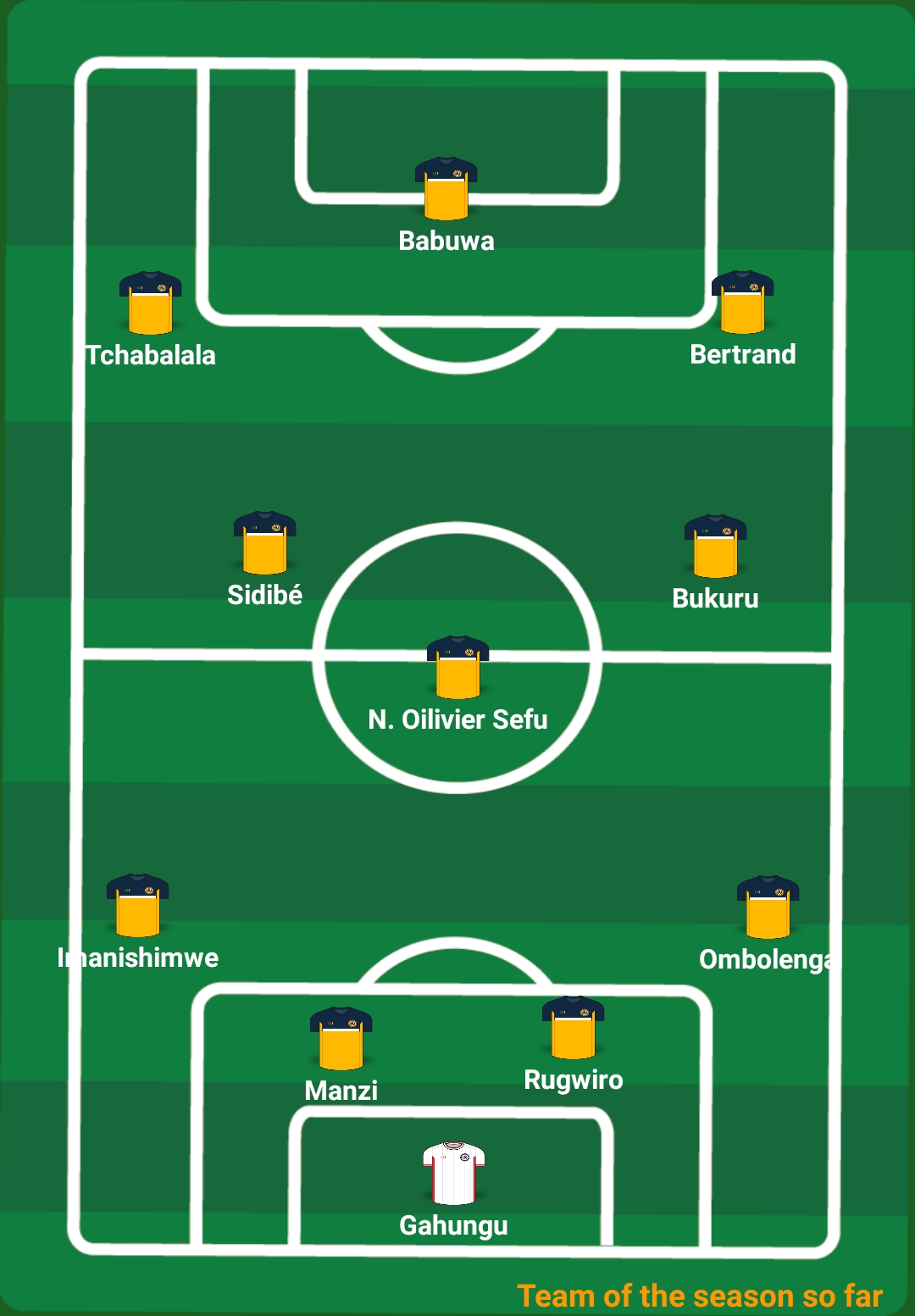 Gusa muri aba bose twatoranyije ikipe y’abakinnyi 11 bayobowe na Manzi Thierry nka Kapiteni, Adil Erradi Mohamed utaratsindwa umukino n’umwe muri iyi shampiyona akayibera umutoza mukuru, agafatanya na Moses Basena usanzwe utoza Sunrise.