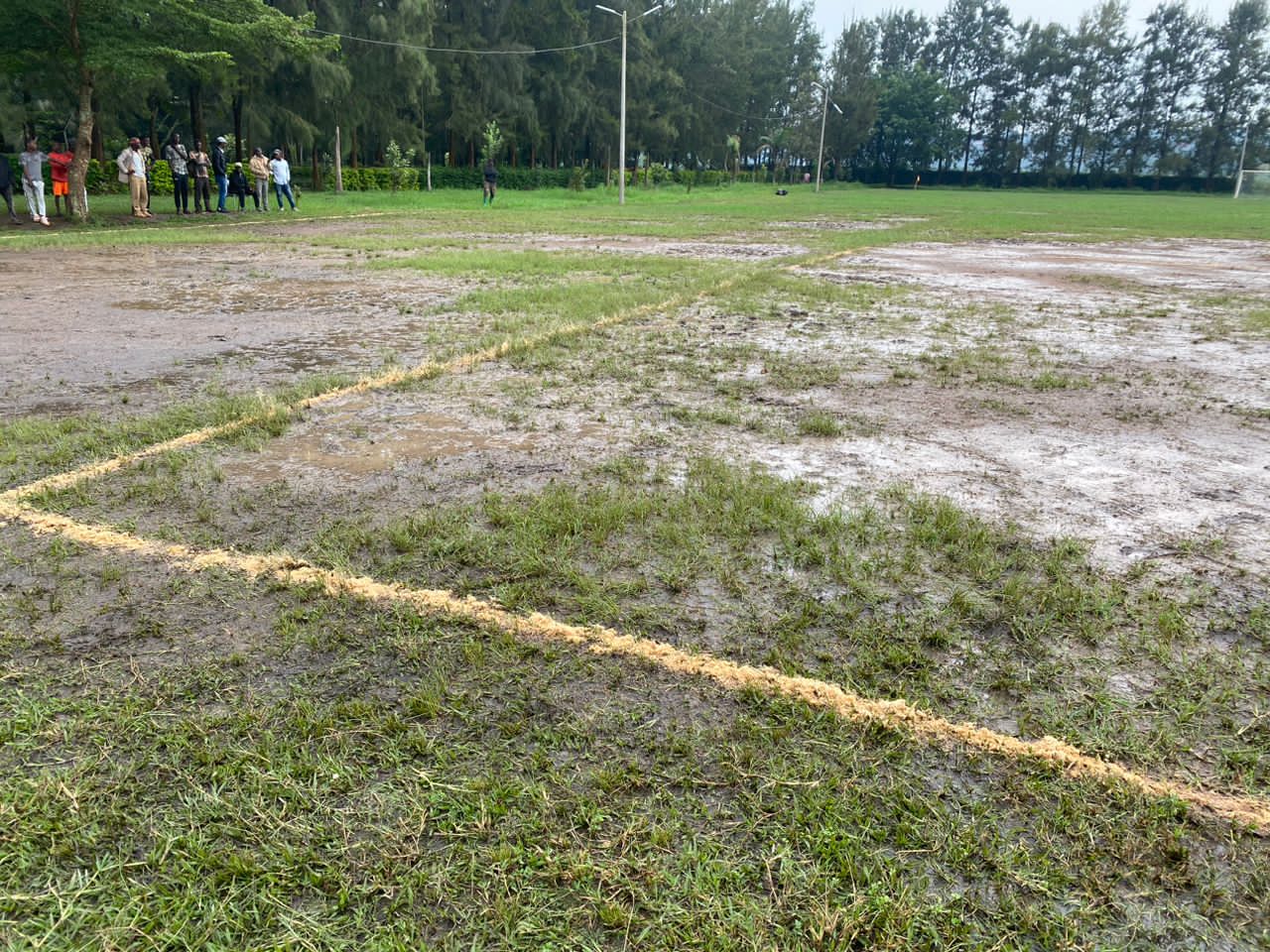 Impamvu yari yatumye uyu mu komiseri ajya kubanza kureba iki kibuga uko kimeze nuko n’ubundi yari ku mukino ikipe ya Addax SC yasezereyemo ikipe ya Etoile de l’Est mu ijonjora ry’ibanze nabwo cyari cyuzuyemo icyondo cyinshi.