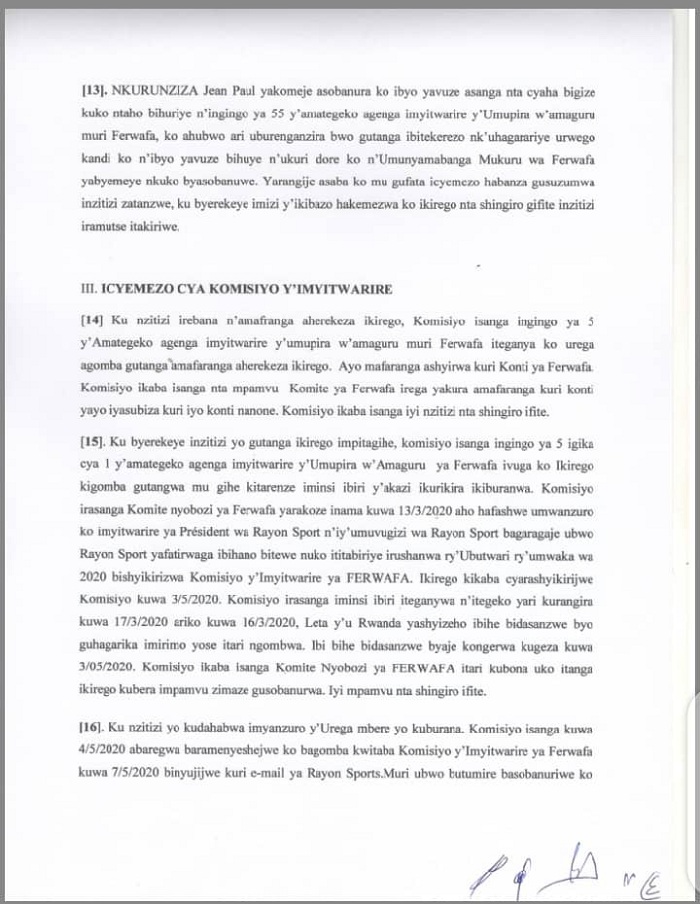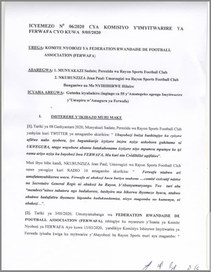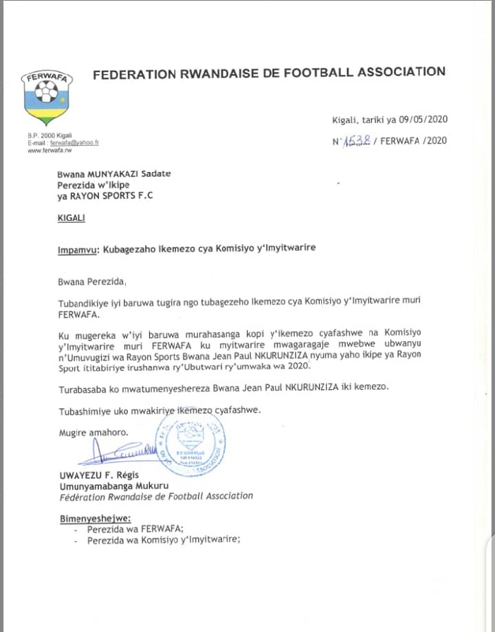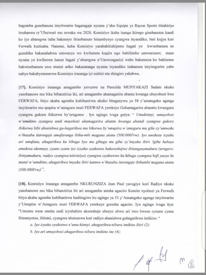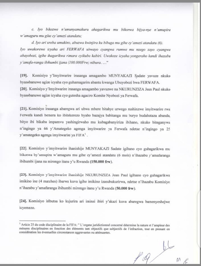 Byinshi ku mpamvu z’ihagarikwa rya Munyakazi Sadate bikubiye muri iyi nyandiko ya Komisiyo y’Imyitwarire muri FERWAFA: