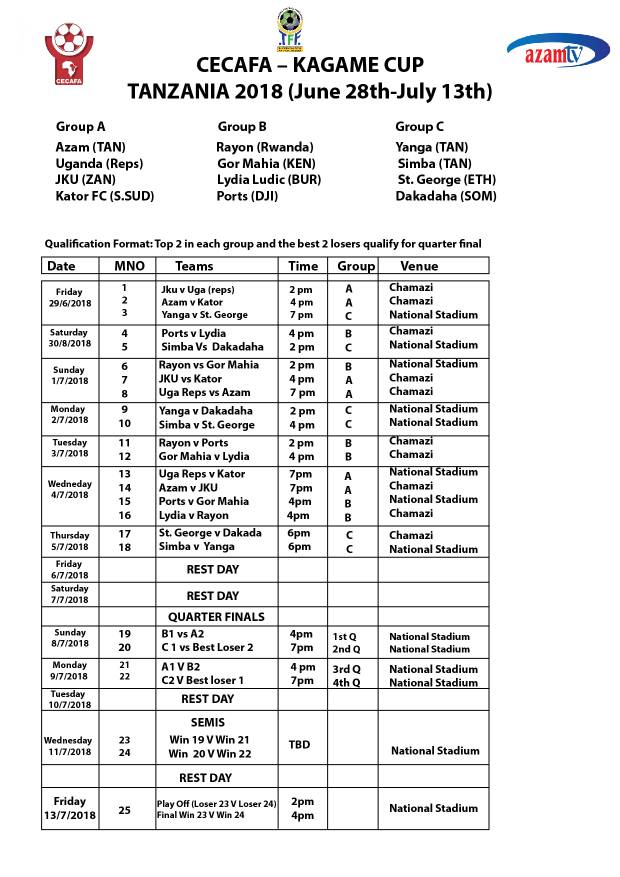 Mu mujyi wa Dar-Es-Salam guhera tariki ya 28 Kamena 2018 kugera tariki ya 12 Nyakanga 2018, hateganyijwe kubera irushanwa rihuza amakipe yo mu karere k’Afurika y’Iburasirazuba yo hagati, irushanwa rinaterwa inkunga na Perezida wa Republika y’u Rwanda Paul Kagame.