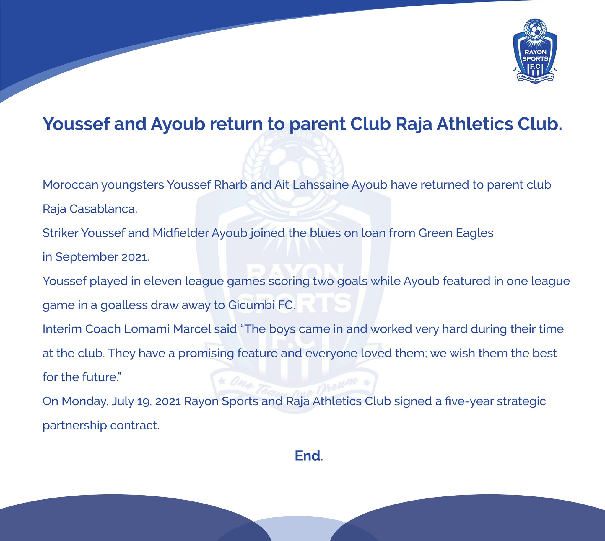 Nyuma y’inkuru yatangajwe n’ikinyamakuru cyo muri Maroc, aho aba bakinnyi bagaragaje ko bafashwe nabi na Rayon Sports, iyi kipe yamaze kubasezerera ibasubiza Raja Cassablanca bari baravuyemo.
