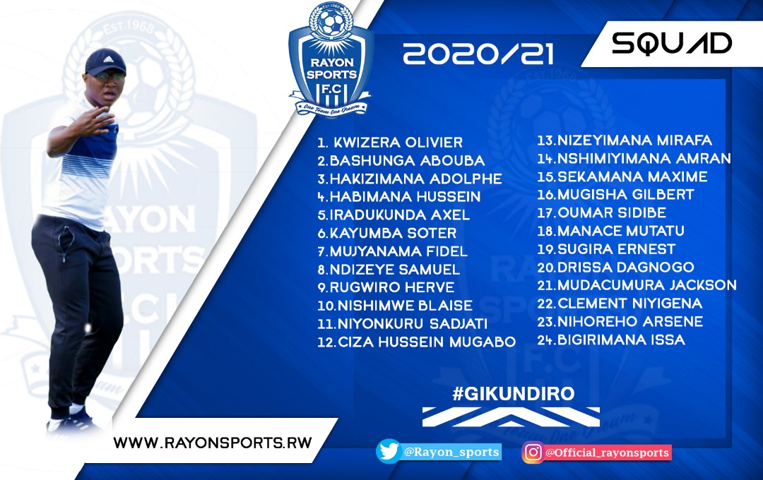 Mu gihe hataramenyekana igihe shampiyona y’icyiciro cya mbere izatangirira, ikipe ya Rayon Sports yamaze gutangaza urutonde rw’abakinnyi 24 izakoresha mu mwaka w’imikino wa 2020/2021 mu mrushanwa atandukanye.