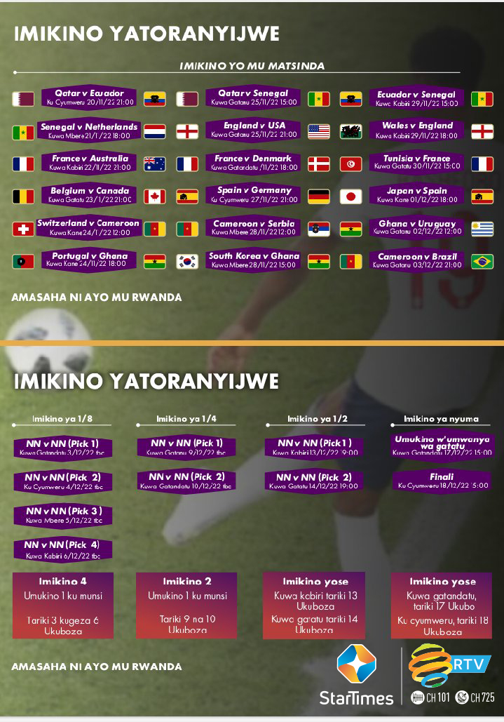 Ibi bishobokera ariko abakoresha decoderi ya StarTimes gusa, iriho RTV CH 101 mureba ku buntu. Kugeza ubu RBA yemeza ko izerekana imikino ikomeye irimo n’amakipe ahagarariye umugabane wa Afurika igera kuri 28 gusa muri 64 y’Igikombe cy’Isi izakinwa.