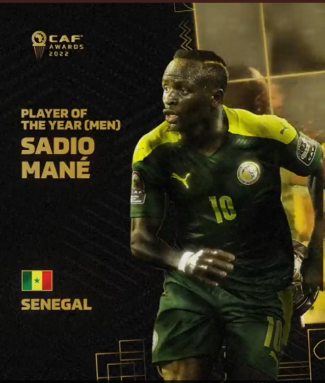 Ku wa Kane tariki 21 Nyakanga 2022, i Rabat mu gihugu cya Maroc habereye umuhango wo gutanga ibihembo ku bakinnyi n’abandi bafite aho bahuriye na ruhago ya Afurika bitwaye neza mu 2022, Sadio Mané ahiga abandi atwara igihembo ku nshuro ya kabiri.
