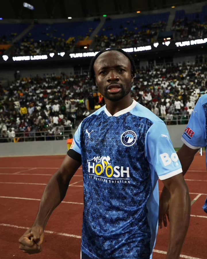 Uyu mupira w’umuterekano watewe neza na Abdelrahman Mohamed wari winjiye mu kibuga asimbuye yawuteretse ku mutwe wa Fiston Kalala Mayele wahise atera n’umutwe umupira ujya mu rushundura, yishyurira Pyramids FC igitego maze Stade yose igwa mu kantu.