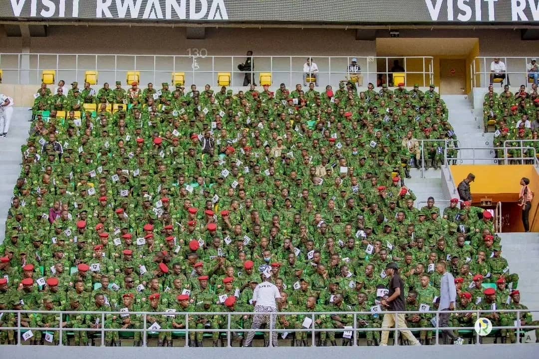 Muri iyi minota ya nyuma y’igice cya mbere amakipe yombi yerekanaga umupira uryoheje amaso y’abafana benshi barenga 1/2 cy’ibihumbi 45 bisanzwe bijya muri Stade Amahoro, aho buri kipe yahererekanyaga umupira mu buryo bwiza, bajya kuruhuka amakipe yombi anganya 0-0.