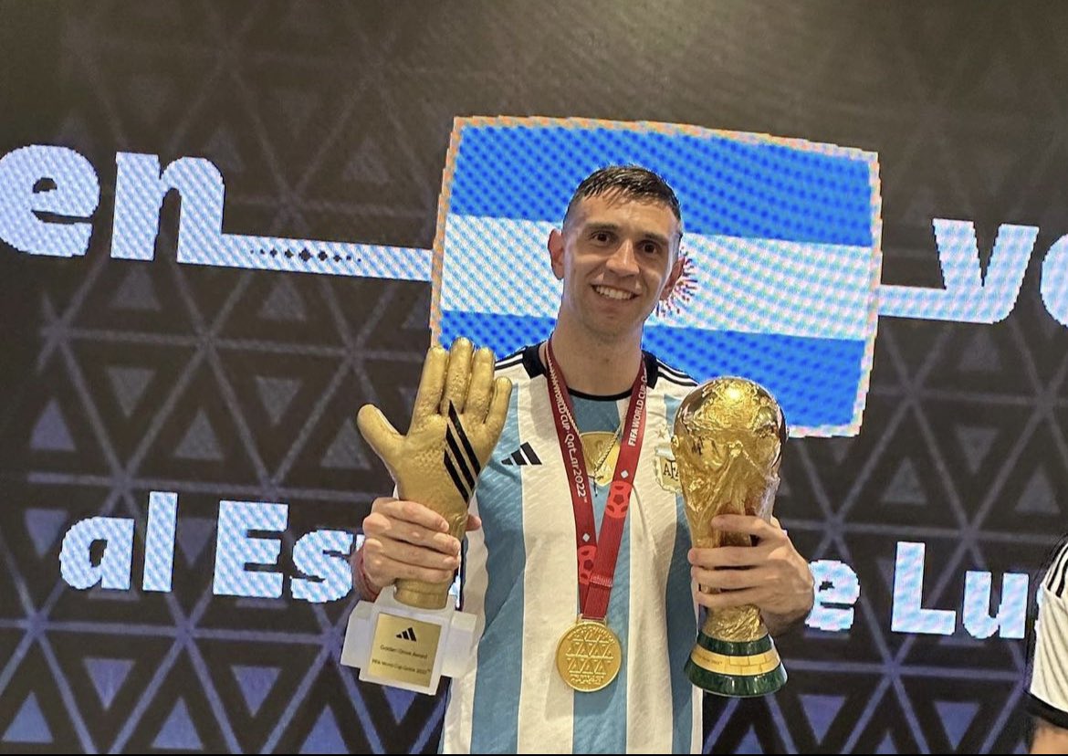 Emiliano Martinez, umunyezamu w’ikipe y’Igihugu ya Argentine mu mikino y’igikombe cy’Isi cya 2022 yabereye muri Qatar, ubu ni umwe mu bafatwa nk’intwari z’iyo kipe zayihesheje igikombe.