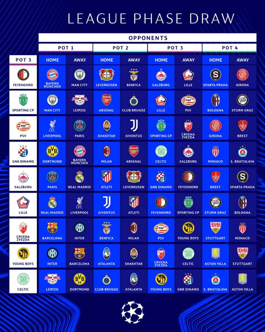 Ni tombola yakozwe mu buryo butandukanye n’ubwari busanzwe bukoreshwa, kuko kuri iyi nshuro izakinwa hadakoreshejwe amatsinda ahubwo, ku ikubitiro hazakoreshwa uburyo busa nka shampiyona (League Phase) aho buri kipe izajya ikina n’amakipe umunani atandukanye igasohoka imikino ine ikanakira indi ine, bivuze ko uburyo bwo gukina imikino yitwaga iyo kwishyura bwavuyeho muri iki cyiciro kibanze.