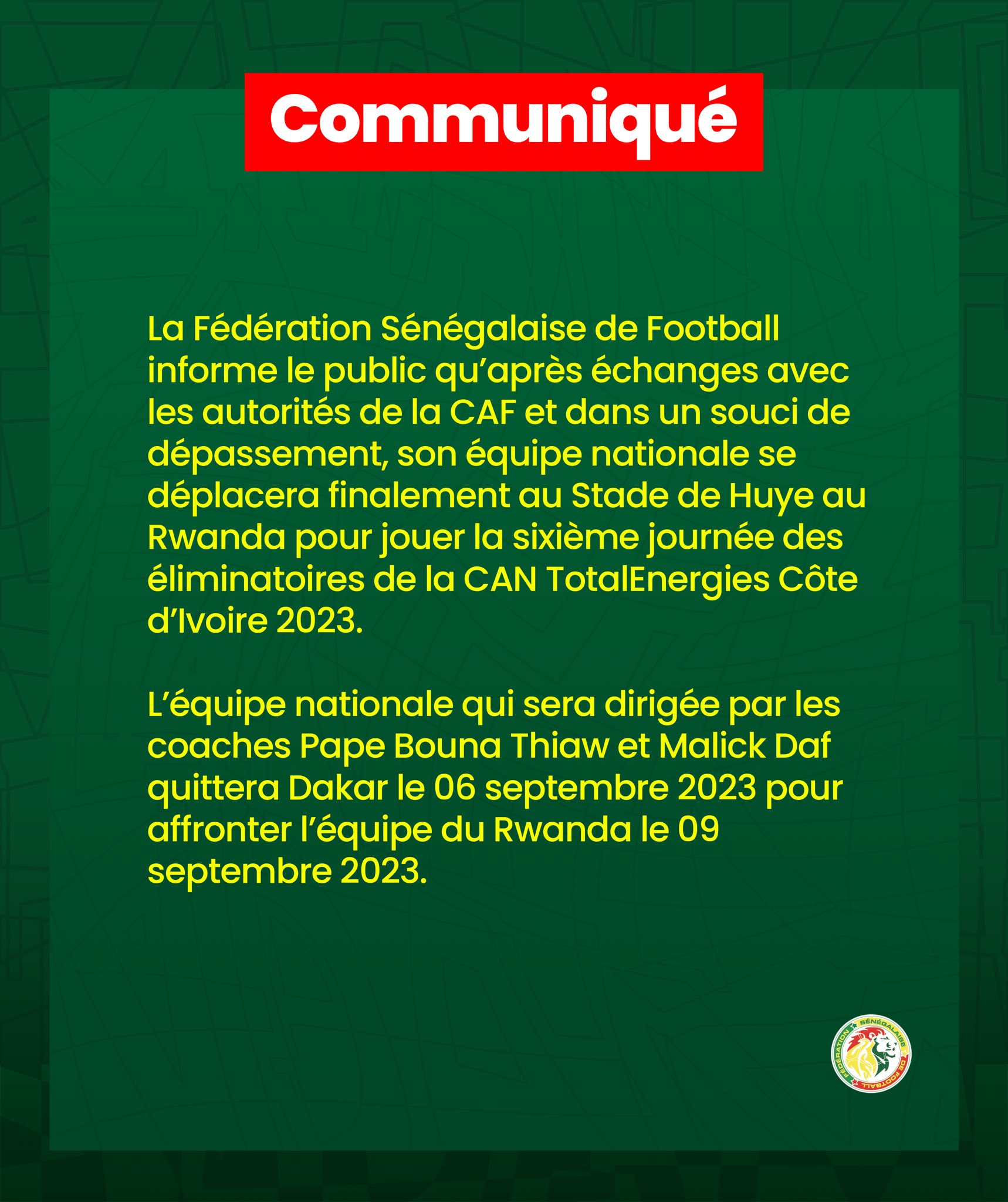 Mu itangazo ryashyizwe ahagaragara n’ishyirahamwe ry’umupira w’amaguru muri Senegal, bamaze kwemera ko bagomba kuzakinira uyu mukino kuri Stade Huye.