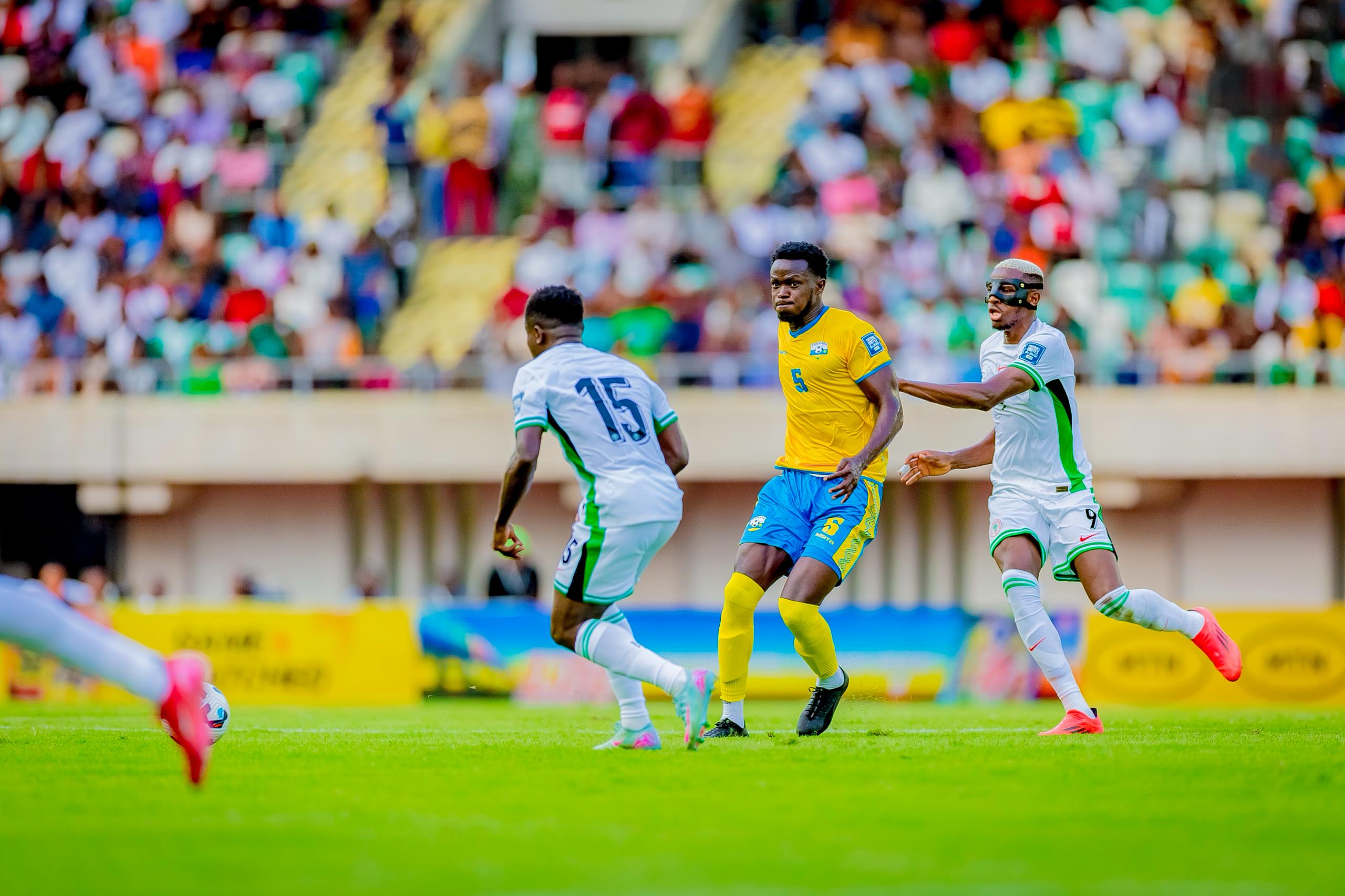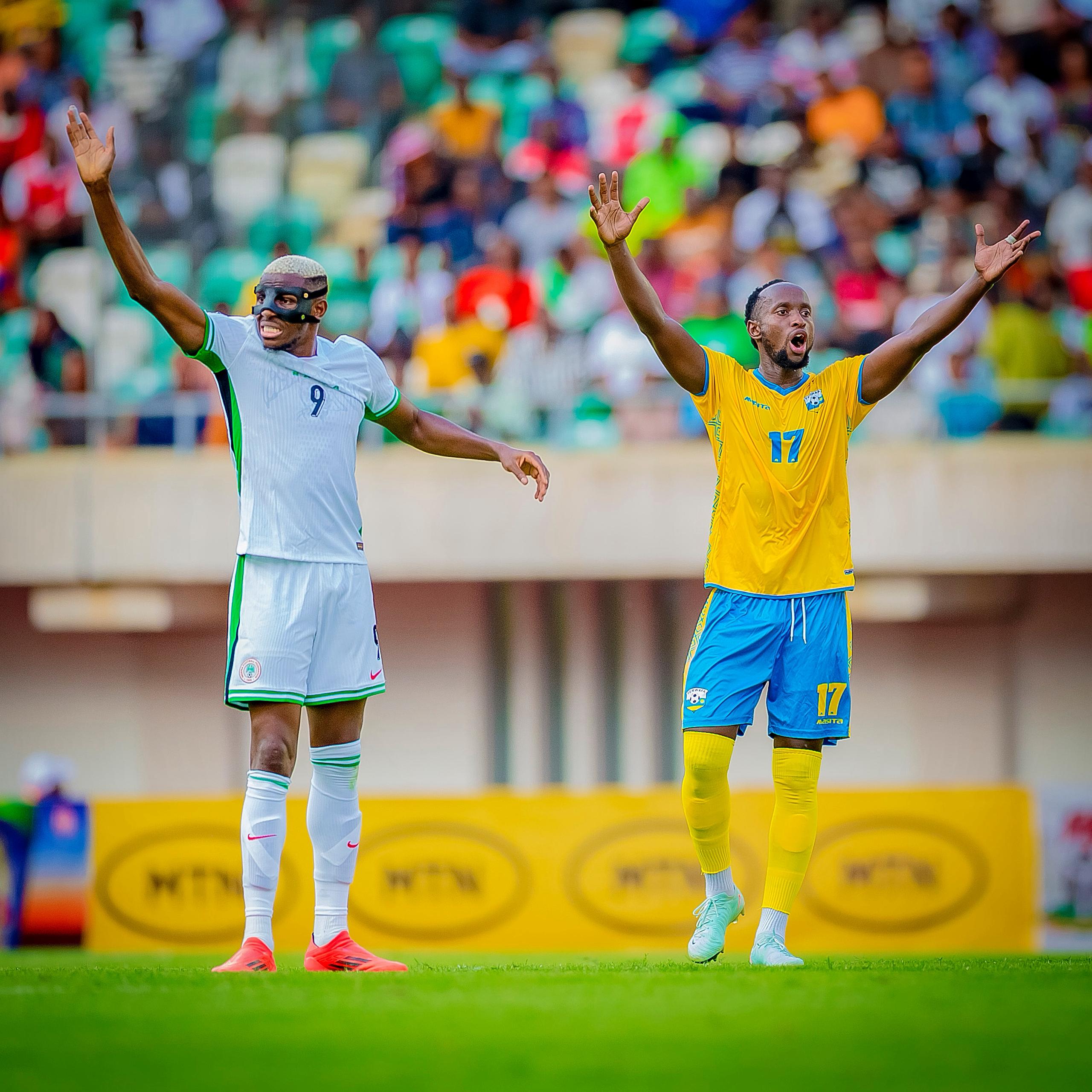 Nigeria yatangiye ishyira igitutu ku ikipe y’u Rwanda ari nako ishaka igitego bitayikundiye mu gice cya mbere kuko cyarangiye ari 0-0, gusa ku munota wa gatanu rutahizamu Victor Osimhen yatsinze igitego umusifuzi akavuga ko yaraririye. Uyu mugabo ku munota wa 35 yahise ava mu kibuga nyuma yo kugira imvune asimburwa na Cyriel.