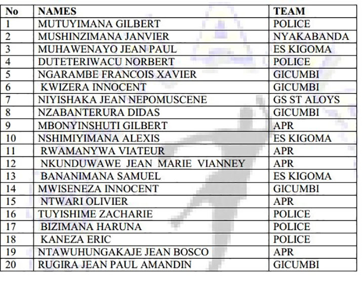 Ikipe ya Police HC, APR HC ndetse na Gicumbi HC nizo zihariye umubare munini w’abakinnyi bahamagawe mu ikipe y’igihugu, aho buri kipe ifite mo abakinnyi batanu mu gihe ikipe ya ES Kigoma ifite batatu, Nyakabanda umwe na GS St Aloys umwe.