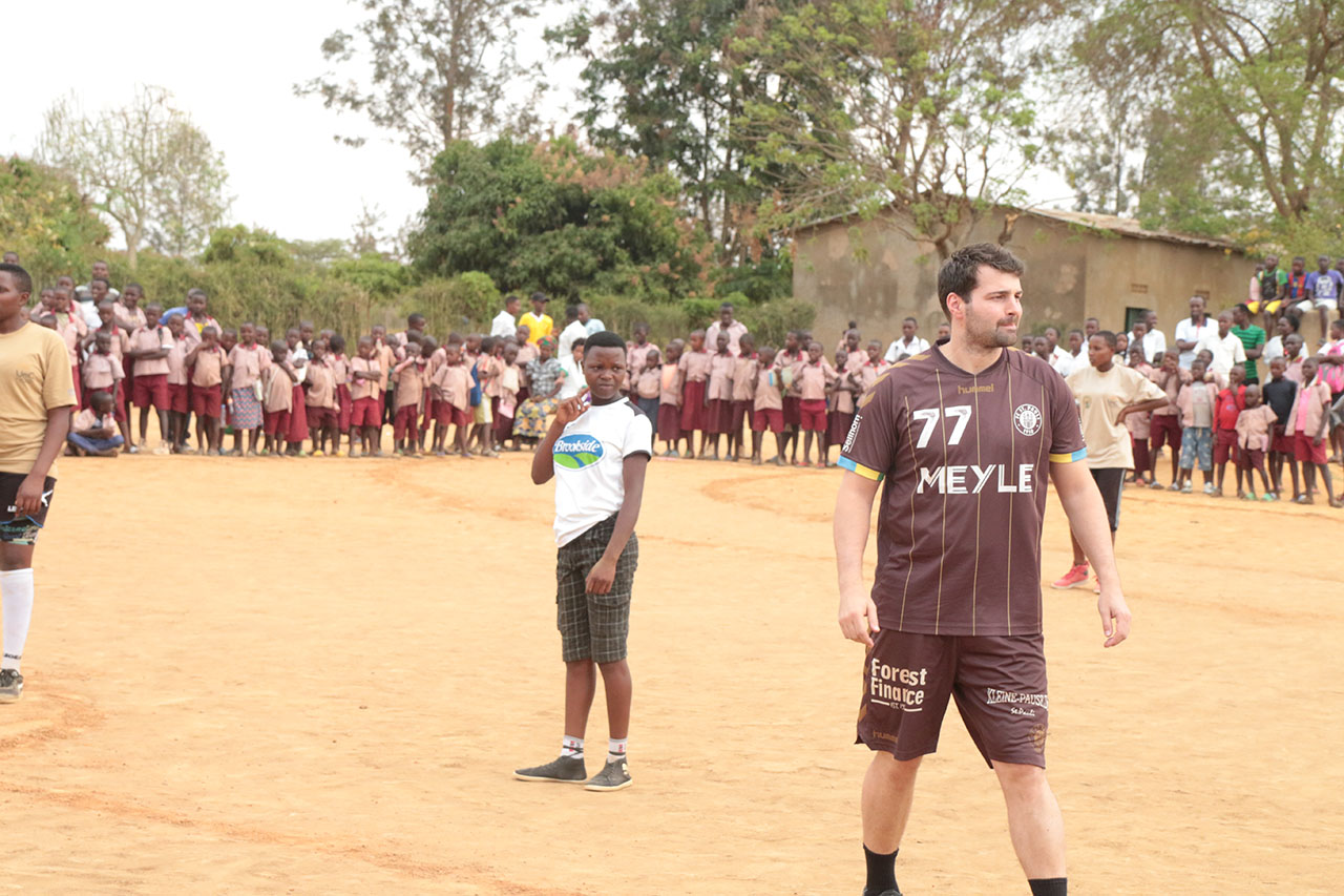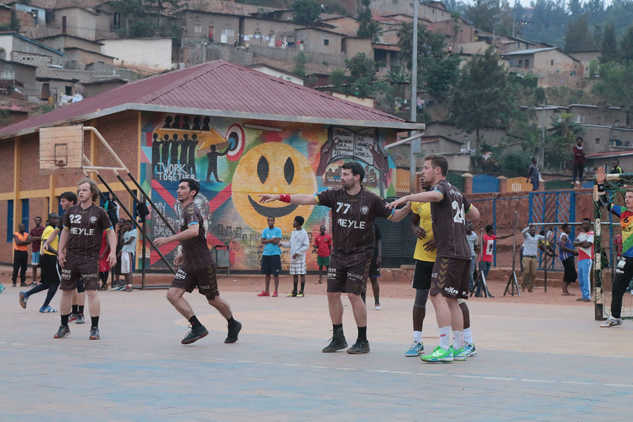 Ku ikubitiro iyi kipe yo mu Budage yageneye inkunga isaga Milioni 4 Frws irimo ibikoresho by’umukino wa Handball, nyuma ndetse kandi ikazagutanga amahugurwa y’ibanze ku batoza b’umukino wa Handball mu Rwanda, kuri ubu aya makipe yombi kuri uyu wa Gatatu yerekeje mu ishuli rya Gs Mwendo, ahatorezwa abana bagera ku 150.