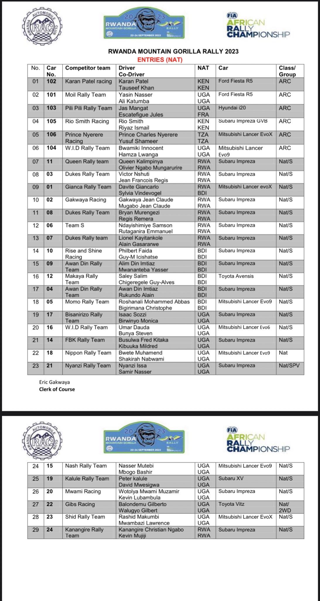 Isiganwa ry’uyu mwaka ryitabiriwe n’imodoka 29 ziganjemo iz’abanyamahanga, , aho iz’abanyarwanda zirimo ari imodoka zirindwi.