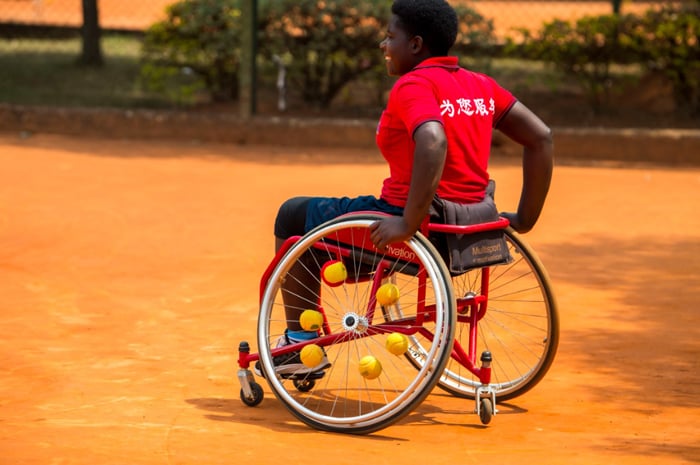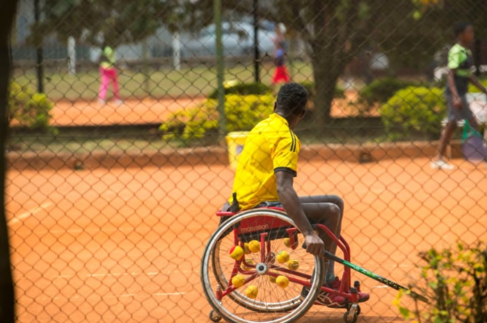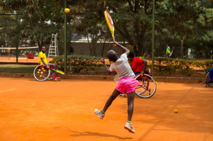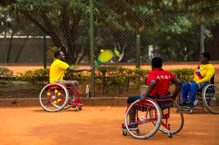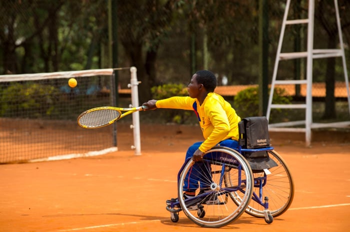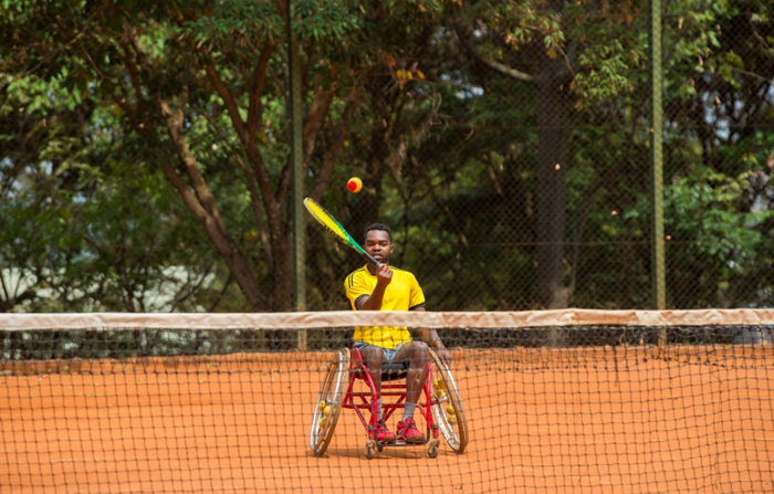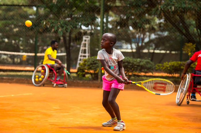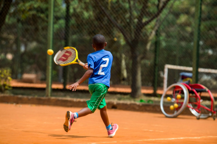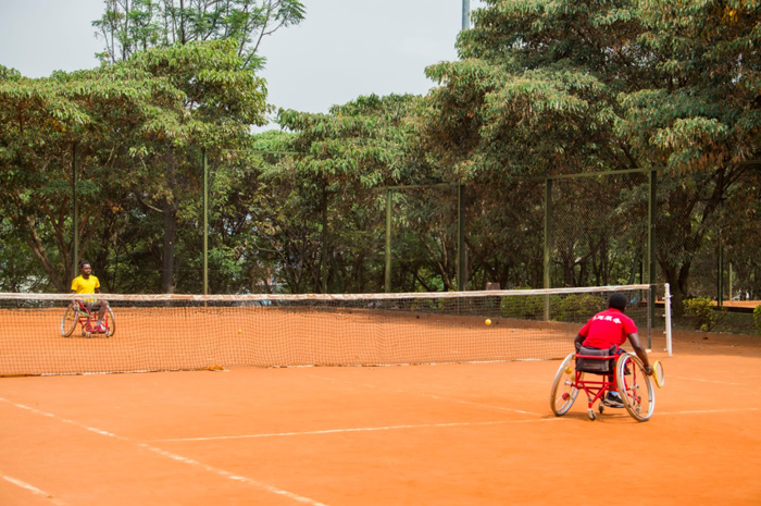 Mu mafoto, ni uku imyitozo yari yiganjemo abakiri bato n’abafite ubumuga iri gukorwa muri Tennis