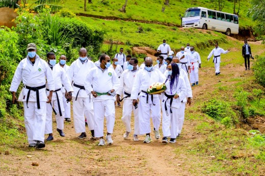 Iri tsinda ry’Abakina Karate ryakomereje mu cyahoze ari Rugarama, aho Sinzi Tharcisse avuka, hakaba habaye igikorwa kunamira no gushyira indabo ku nzibutso zitandukanye zishyinguyemo ababyeyi be, abavandimwe, umuryango we muri rusange, inshuti ndetse n’abavandimwe.
