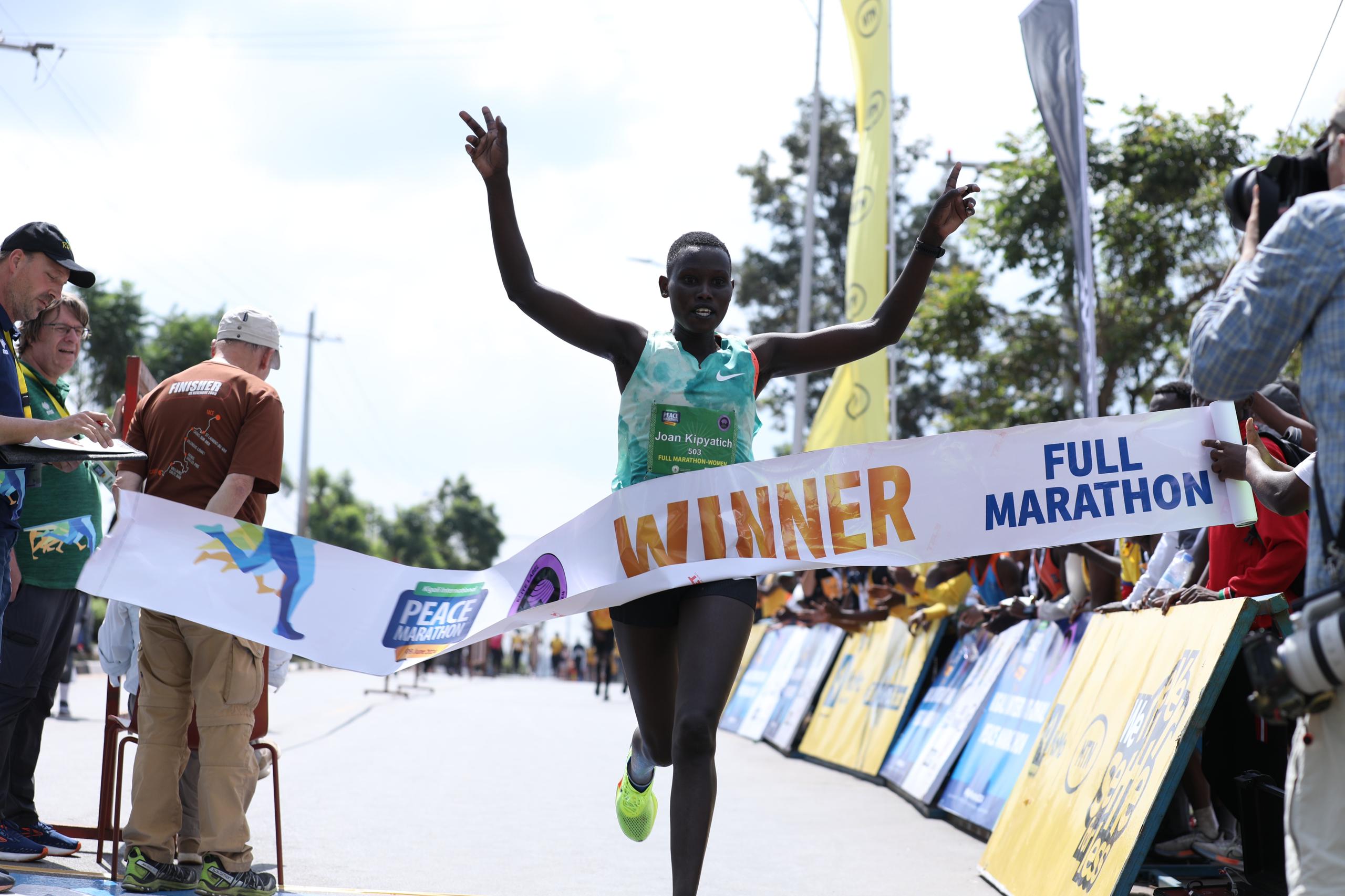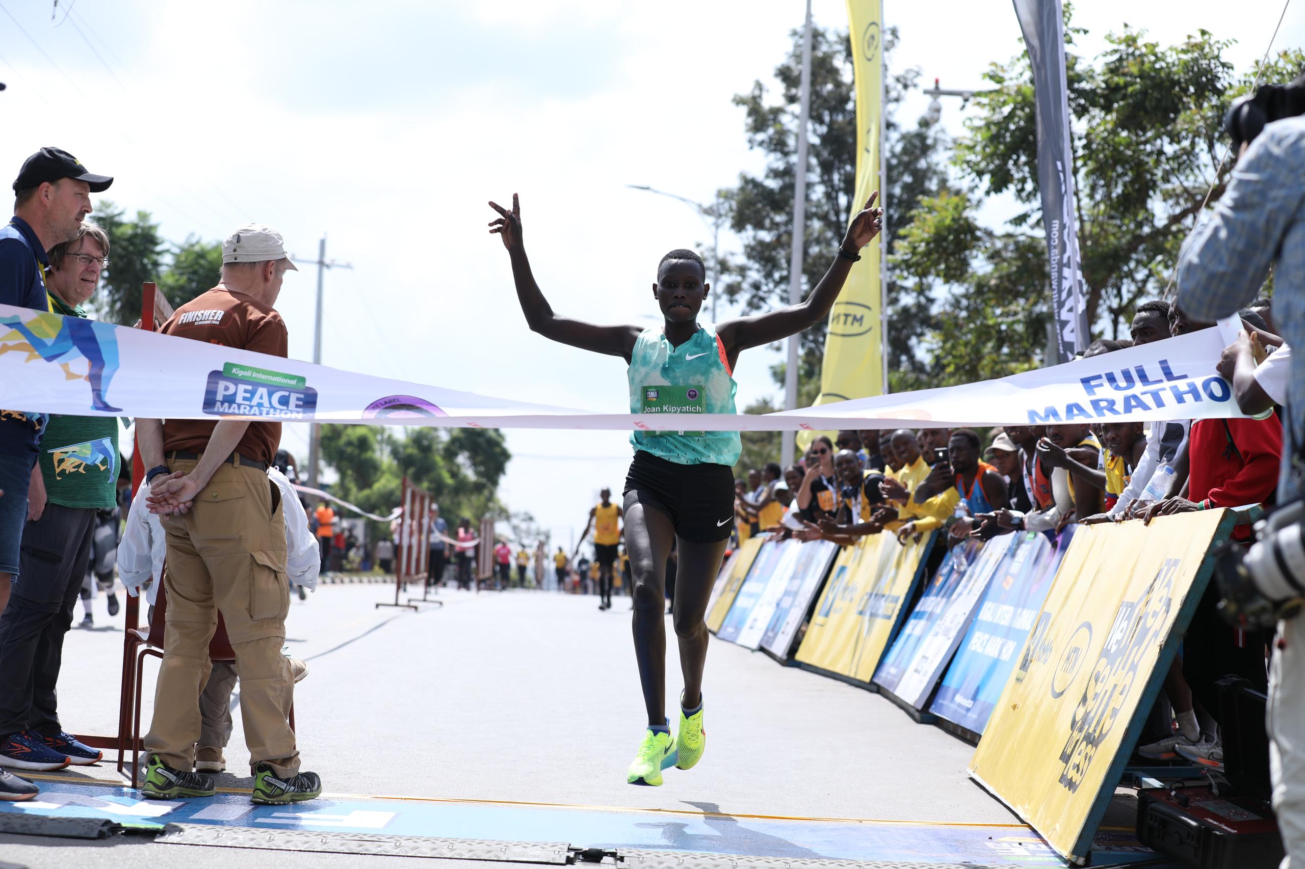 Umunya-Kenya Laban Korir mu bagabo ndetse na mugenzi we Joan Kipyatich mu bagore begukanye irushanwa mpuzamahanga mu gusiganwa ryitiriwe amahoro ’Kigali International Peace Marathon 2024’ ryabaye ku cyumweru tariki 09 Kamena 2024.