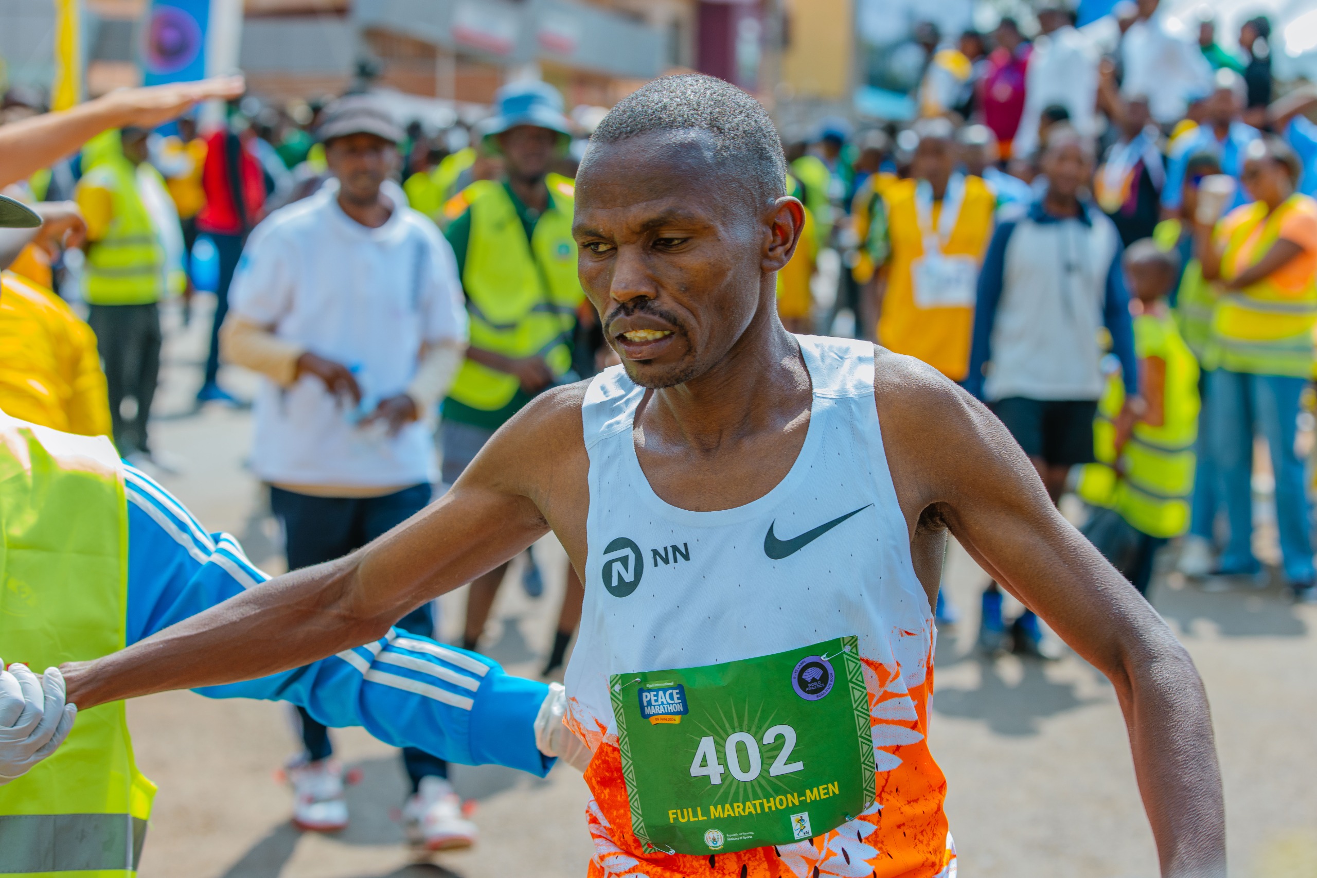 Mu cyiciro cy’abagabo muri Full Marathon Umunya-Kenya Laban Korir yegukanye ’Kigali International Peace Marathon 2024’ akoresheje amasaha abiri, iminota 16 n’amasegonda atandatu. Uyu yakurikiwe na mwenewabo Cornelius Kipeti Kiplagat wasizwe amasegonda 12 gusa.