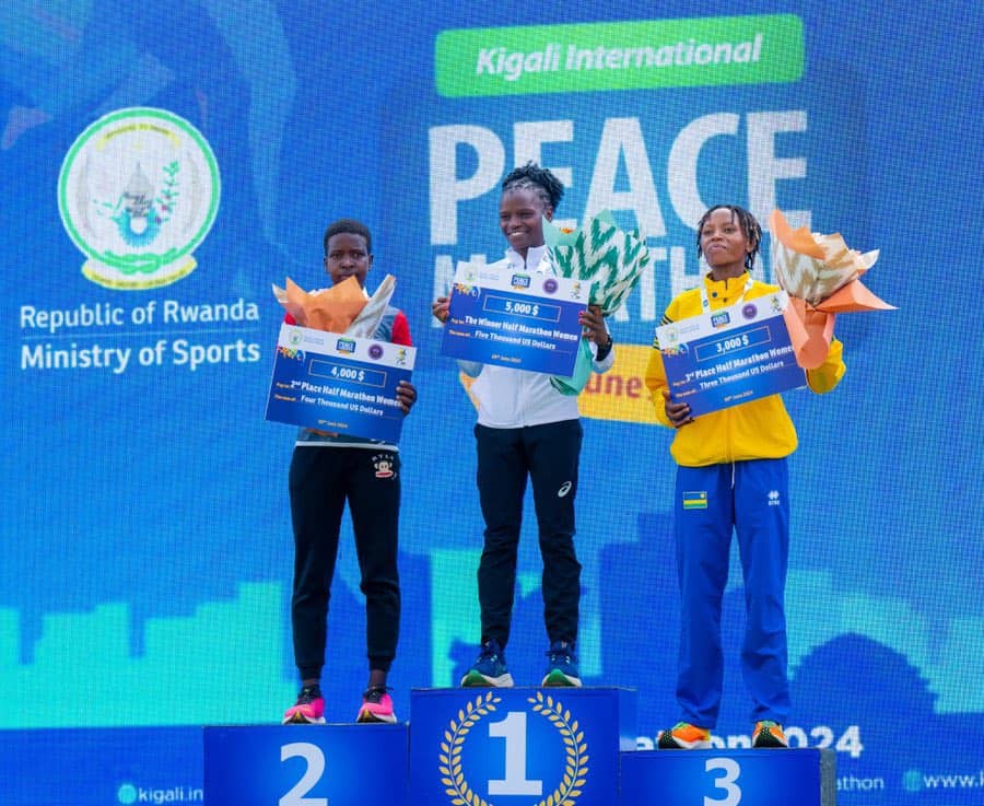 Mu kiciro cy’abagore, muri Half Marathon Umunya-Kenya Winfridah Moraa Moseti yegukanye umudali wa Zahabu, Vivian Jepkogei Cheruiyot aba uwa kabiri yegukana umudali wa Feza nyuma yo kurushwa isegonda rimwe n’uwa mbere naho Umunyarwandakazi Imanizabayo Emeline yegukana umudali wa Bronze nyuma yo kuba uwa gatatu.