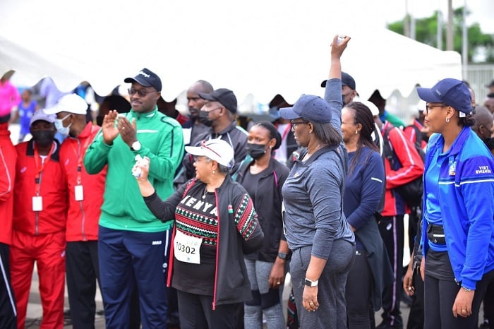 Madamu Jeannette Kagame na Margaret Kenyatta, umugore wa Perezida Uhuru Kenyatta wa Kenya, bitabiriye isiganwa mpuzamahanga ryitiriwe Amahoro, ‘Kigali International Peace Marathon’, kuri iki Cyumweru tariki ya 29 Gicurasi 2022.