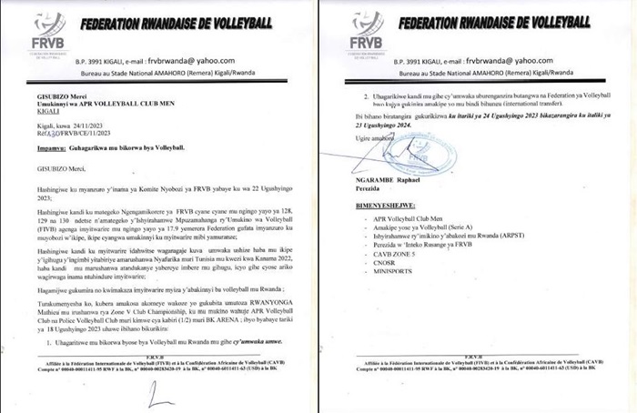 Mu ibaruwa ifunguye yagenewe uyu mukinnyi n’ikipe ye ya APR VC, federasiyo y’umukino wa volleyball mu Rwanda yemeje ko yamaze gufatira ibihano Gisubizo Merci byo kumuhagarika umwaka wose mu bikorwa bya volleyball ndetse no kumufungira uburenganzira bwo kuba yakwerekeza mu yindi kipe iyo ari yo yose hanze y’u Rwanda.