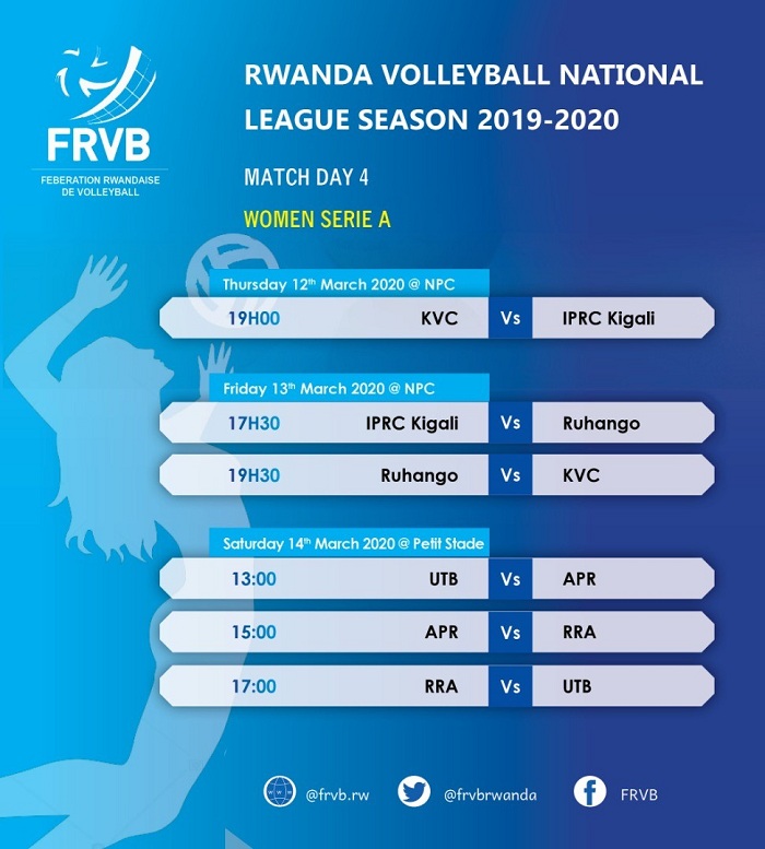 Kuri uyu wa Gatandatu tariki ya 14 Werurwe 2020 muri sitade nto i Remera harakomeza umunsi wa 9 wa shampiyona ya Volleyball mu bagabo.