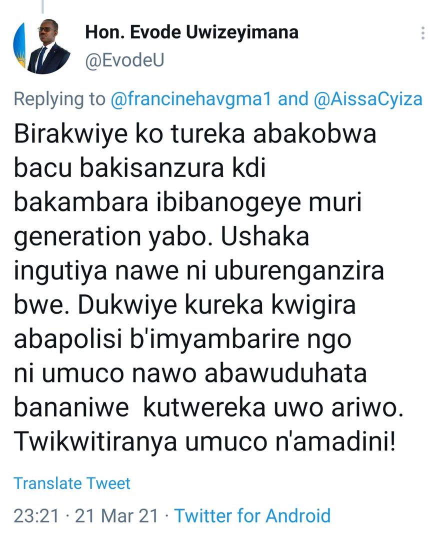 Yanditse agira ati “Birakwiye ko tureka abakobwa bacu bakisanzura kandi bakambara ibibanogeye mu gihe cyabo. Ushaka ingutiya nawe ni uburenganzira bwe. Dukwiye kureka kwigira abapolisi b’imyambarire ngo ni umuco kandi nawo abawuduhata bananiwe kutwereka uwo ari wo. Twikwitiranya umuco n’amadini!”