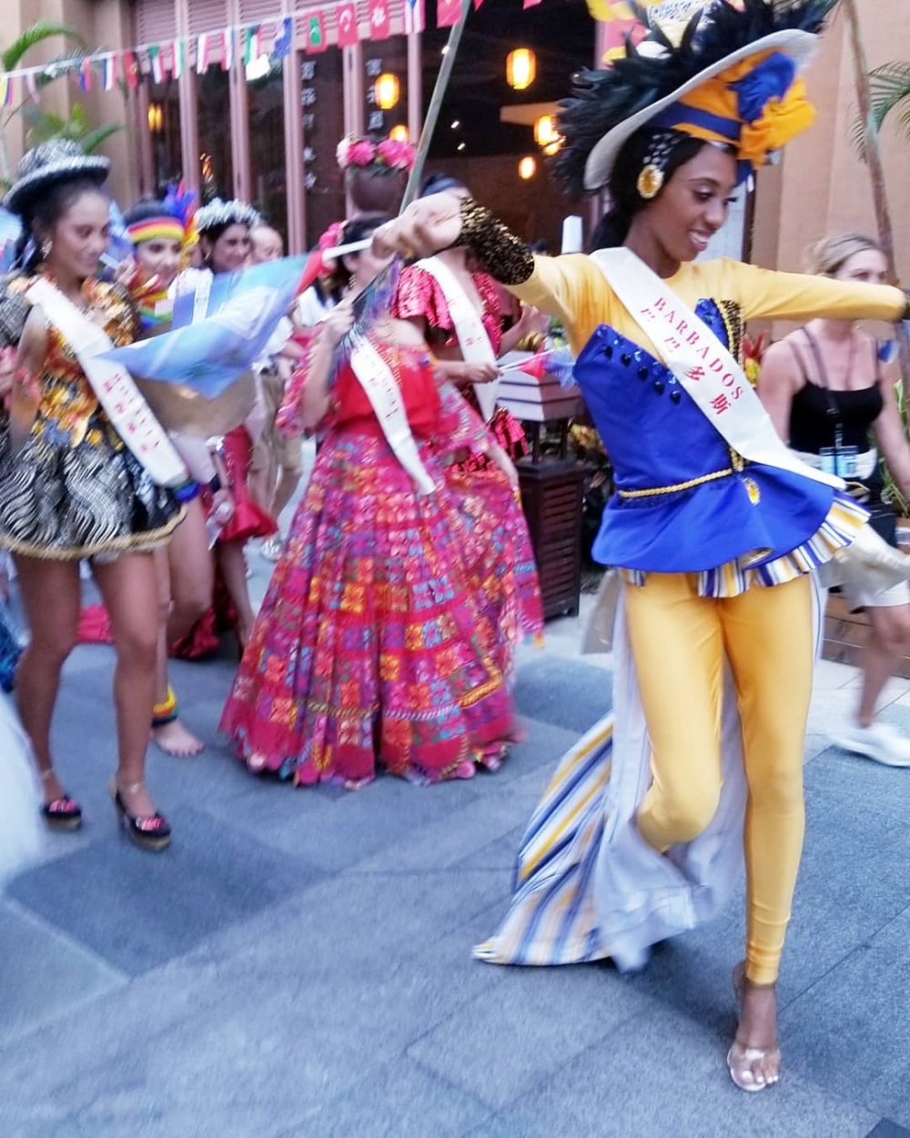 Mu mwambaro uranga umuco wa buri gihugu umukobwa uri mu irushanwa ahagarariye, batembereye mu Mujyi wa Sanya bahabwa ikaze n’abawutuye, nk’uko Urubuga rwa interineti rw’iri rushannwa (www.missworld.com) rubitangaza.