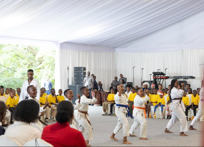 Abana bashimiye Madamu Jeannette Kagame wabatumiye banamugaragariza ibyishimo binyuze mu mbyino, indirimbo, imivugo n’imikino itandukanye.