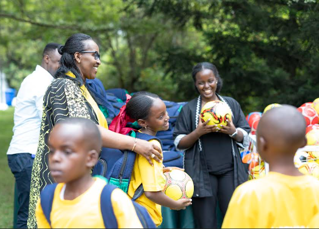 Madamu Jeannette Kagame yageneye impano zitandukanye aba bana zirimo ibikoresho by’ishuri, ibikinisho, imipira yo gukina, ibikapu byo gutwaramo ibikoresho by’ishuri, n’ibindi.