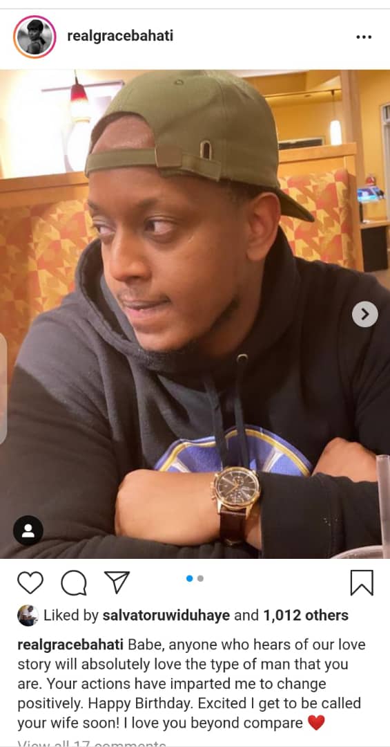 Abinyujije ku mbuga nkoranyambaga, Miss Bahati yagize ati “Buri wese uzumva inkuru y’urukundo rwacu azakunda umugabo uri we, ibikorwa byawe byanteye guhinduka mu buryo bwiza kurushaho. Isabukuru nziza! Nishimiye kwitwa umugore wawe vuba cyane, ndagukunda bitagereranywa.”