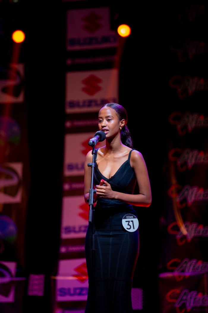 Nishimwe Naomie (31): Arangije amashuri yisumbuye, yize Imibare, Ubukungu n’ubumenyi bw’isi, Umushinga we ujyanye no kugabanya ingaruka ziterwa n’ibibazo byo mu mutwe. Aramutse abaye Miss yashyiraho umurongo abantu bafite ibibazo byo mu mutwe bazajya bakoresha bakabona ubufasha.