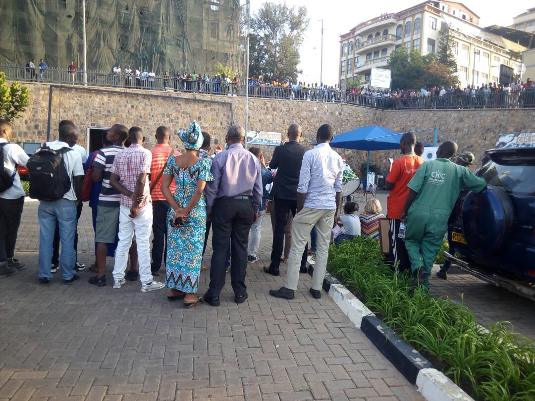 Bamwe babegereye,abandi bari ahirengeye aho babitegeye neza, wabonaga batangajwe n’uburyo abo bana bacurangaga ibyo bicurangisho.