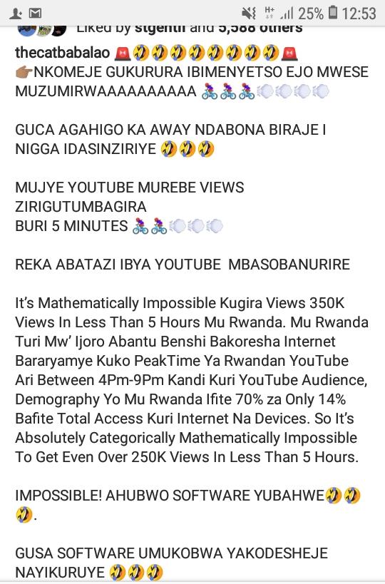Uwa mbere wahise abikemanga ndetse yemeza ko hari uburyo Meddy ashobora kuba yaguze views akoresheje software yabigenewe kugira ngo yerekane ko ari igitangaza, ni uwitwa The Cat uzwi cyane ku mbuga nkornyambaga.